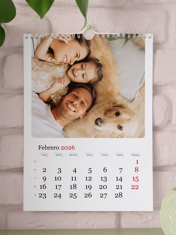 Nuestro Calendario Personalizable de Pared está diseñado para que puedas recordar cada mes con tus fotos familiares, de viajes o de tus mascotas.