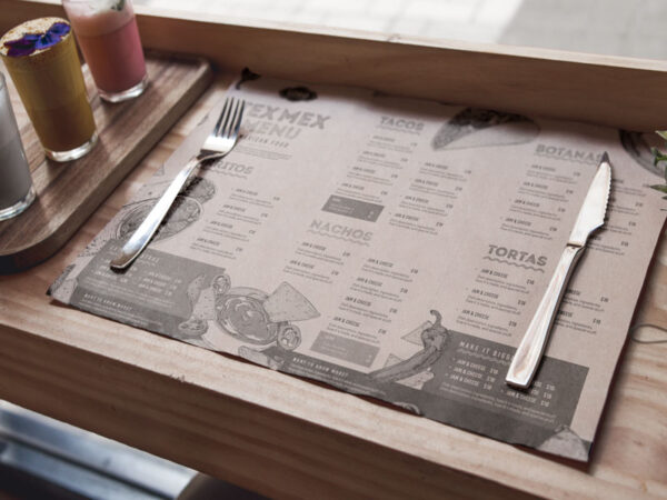 Manteles desechables para restaurante en papel kraft – Pedido mínimo 500 uds – Impresión a 1 tinta